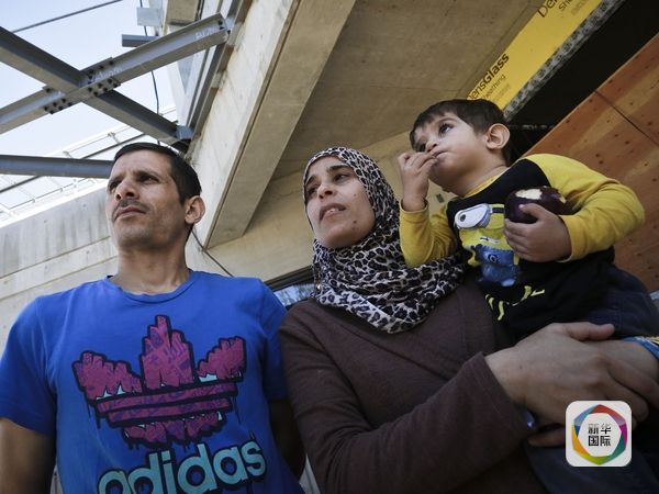 9月10日,温哥华,获加拿大收容的叙利亚难民家庭到工地上参观兴建中的难民综合大楼。(新华社发)