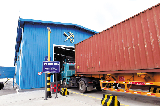 南沙自贸区海关使用先进的FS6000系统对集装箱货柜车进行查验,只需10秒钟。这与南沙其他新政一样,着眼于“惠民”与“省时” 新华社 发