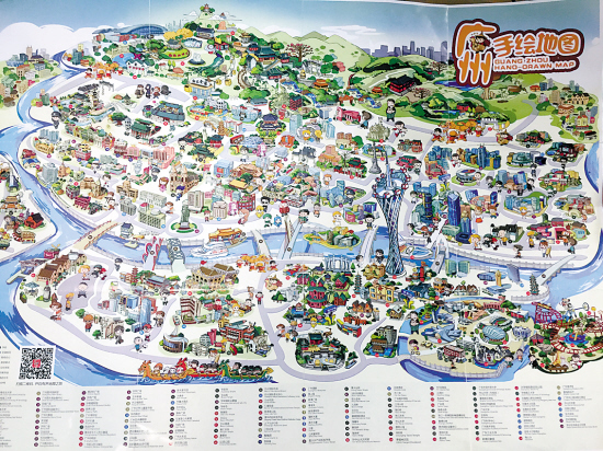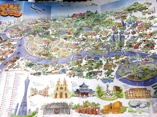 广州巨有文化发展有限公司负责人黄斌补充道,该公司印发的《广州手绘地图》与《老广新游·广州手绘地图》表现形式存在较大差别。“他们是淡色水彩画,我们更突出场景化人物涂鸦创作手法”。