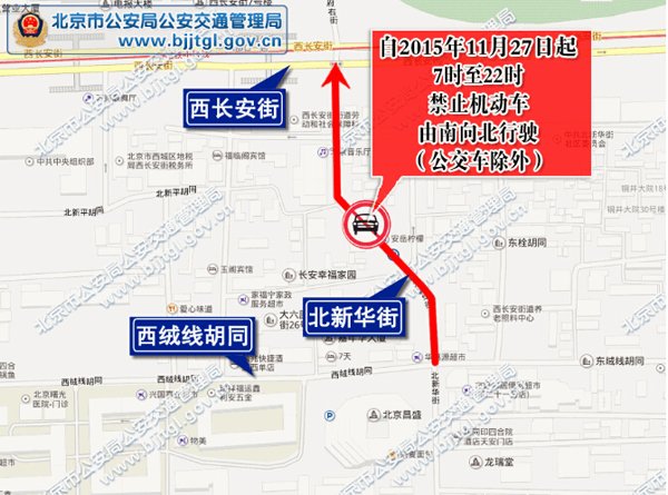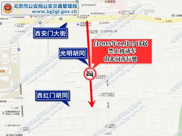 1.光明胡同(西红门胡同至西安门大街)禁止机动车由北向南行驶;