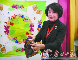 一枚压线顶针,一个针脚规,几块不同色彩的布料,经刘欣手里一捣鼓,没多久就刻画出了一幅精致好看的花鸟图案。“布雕就是以各种颜色的布帛为材料,根据布料固有的纹理、色彩、光泽等特点将其拼成人物,动物,花鸟,风景等图案。”在中山大学的校园讲座上,刘欣一边动作娴熟地演示着布雕的创作过程,一边向学生讲述着布雕的基本知识。从事布雕创作20年,刘欣仍然激情不减,对她来说,每次创作都是一次难得的精神享受,“没啥原因,就是喜欢”。