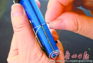 尽管很多资深的压线师傅已经沿用这种方法几十年了,但是怕痛的刘欣还是选择了对工具进行改善。改进后的顶针用法就是每缝几针后,就用其顶住针的眼部,将手缝针向前推,这样就可避免针眼部位向后戳进手指。如此操作,就不再扎手指了,而且制作速度也快了。