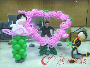 我做过各式卡通造型气球公仔如公主、新娘、舞狮、士兵,对比之下我比较喜欢按客人的要求订造,就好比在婚礼中我按客人的喜爱,设计了粉红色蝴蝶结吊钟拱门及一同踏单车的新人气球公仔。最令我感触的是,最近香港开始有人在喪礼上做气球布置,由于受西方文化影响,他们认为死亡只是暂时的离别,想喪礼开心一点。气球真的有一种神奇的力量,不但能够令人快乐,也能安抚人们悲伤的情绪。![]()