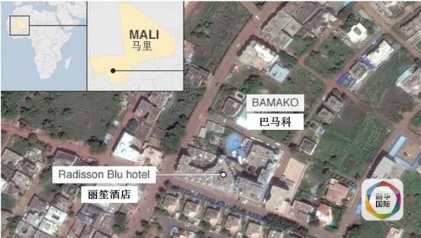 丽笙蓝标酒店邻近马里政府和外交机构所在区域,住有不少外国人,包括中国、印度、土耳其、法国和几内亚公民。