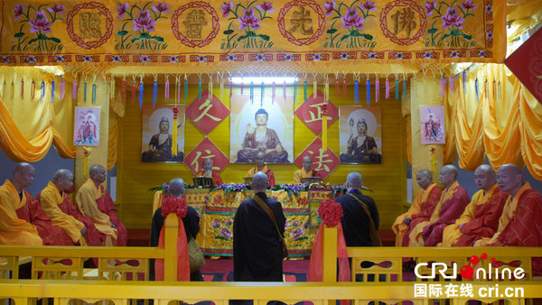 国际在线报道(记者 台林珍):“有福方登圣贤地,无缘难入涅槃门”,沿着直达圆通寺的灵鹫岭石阶古道,登山朝圣,犹如从尘世通往梵天仙境。闽西著名的佛教圣地天宫山圆通寺已有一千三百多年的历史。11月20日,圆通寺庄严肃静,钟鼓梵音,迎来了隆重的传授比丘戒法会,礼请中国佛教协会会长、福建佛教协会会长学诚大和尚为得戒和尚,按照汉传佛教三坛大戒仪轨向前来求戒的300余名戒子规范传授佛陀比丘戒法,隆重的仪式见证着一介凡夫趣向圣者的历程。学诚大和尚期冀新戒比丘做有责任的出家人,肩负历史赋予的使命。