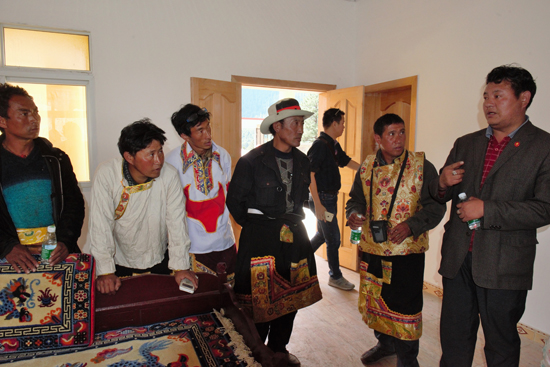 所以,布多他们来到的时候,新的目本村已经初具规模,一天天变漂亮的新房子甚至引起了隔壁巩固村村民的“嫉妒”。和布多一起来的,还有村委会主任恰珠和3位村民代表,由于路途遥远,他们都是第一次来探望自己的新家。在仔仔细细看过新房和周边的环境后,36岁的索纳次仁用生硬的汉语说了句“这里好”。村民巴休则通过布雷告诉记者,新家不但房子好,孩子上学、老人看病都方便。