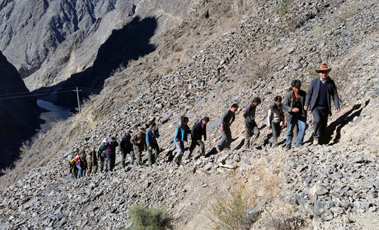 随行的一位援藏干部用手机拍下了路上的情景:一行人徒步行走在超过60度的斜坡上,上方是松动的碎石,鞋子踩在石子上发出清脆的叮当声,有的路段先要派人把碎石清理下才能通过,而斜下方就是滚滚怒江。王建文说,走到后来,浑身疼痛难忍,“想死的心都有了”。