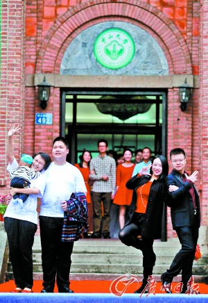 广东外语外贸大学2000级的张一鸣是80后,广外校庆50周年之际,家住深圳的他在微信群上和同班同学们约好到广州一聚。“我们是小班教学,一共32人,以女生居多,微信群上一召集就有15位同学响应”,张一鸣说,大家一开始讨论是同学们单独聚会,可不知谁说了一句要带家属和孩子参加,结果同学们都纷纷表示要带上家属和孩子。