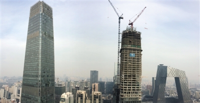 昨日10时20分,随着长达9米的最后一根钢梁徐徐升空并准确吊装就位,高达295米的国贸三期B阶段工程封顶,与其“姐妹楼”、有“北京第一高”之称的国贸大厦并立于北京CBD之巅,俯瞰着古老而又现代的北京城。作为北京CBD的标志性建筑之一,国贸三期B工程封顶后,与国贸大厦组成了“国贸双璧”,完成了国贸地块的“整体拼图”。国贸三期B工程2012年5月启动建设工程,计划最终完工时间为2016年10月19日,占地面积为19456平米,总建筑面积232903平米。