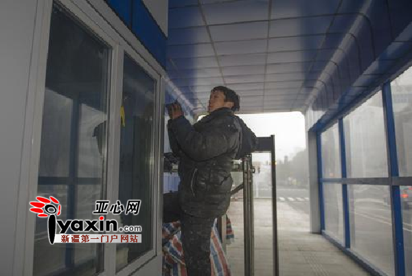 图为:昨日13时许,中亚南路。一位施工人员在站内做最后的收尾工作。亚心网记者陈峰摄