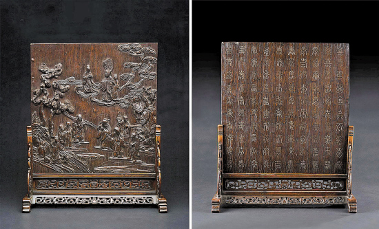 清乾隆 沉香木雕八仙祝寿插屏 2014年北京古天一拍卖402.5万元成交