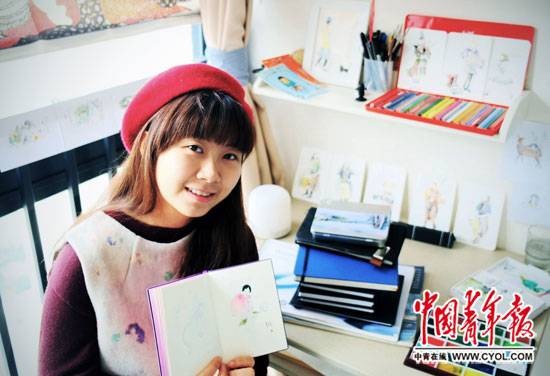 刘玙洁的“每日一绘”始于2012年元旦。正是毕业设计和留学申请让她忙得焦头烂额的时候,她反而给自己增加了一个任务,每天画画上传微博,至今已攒下800余张。她喜欢沉浸在绘画的轻松氛围里,自然,日积月累技艺也有提升,但商业项目给她带来的鼓舞远不及自我表达带来的成就感,新认识的朋友甚至可以通过她的画来迅速了解她。