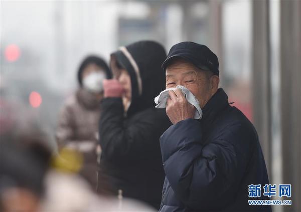 新华社照片,北京,2015年11月30日 北京遭遇严重污染天气 11月30日,在北京紫竹院路上的一个公交站台,一位市民用毛巾捂住口鼻以防范重度污染的空气。当日,北京全市遭遇严重污染天气。北京市气象台12时30分升级发布霾橙色预警信号,重度霾天气仍将持续。据北京市气象台下午发布的预报显示,11月30日夜间到12月1日白天北京地区空气污染气象条件均将为六级。新华社记者 陈晔华 摄