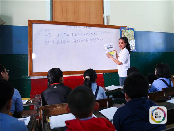 图为今年8月21日,毛里求斯首都路易港的维利耶勒内小学,汉语教师麻丽贤在授课。(新华社记者潘思危摄)