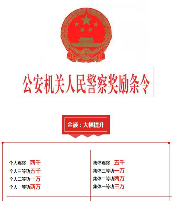 修订后的《公安机关人民警察奖励条令》已经公安部及人力资源社会保障部审议通过,自2016年1月1日起施行。