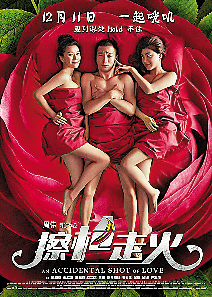 《擦枪走火》定档12月贺岁档,定位是档期内唯一的“内涵喜剧”。据了解,该片所有的激情戏均由武术指导专门设计完成,包括转身空翻等高难度动作。在广州首映礼上,诸位主创皆被问及激情戏话题。“秀才”喻恩泰被逼无奈之下,为不得罪“前任”或“现任”,索性选择了跟吴樾现场示范“借机位激吻”,令在场观众尖叫不已。据了解,《擦枪走火》之后还将完成一连串的全国各大城市路演。![]()