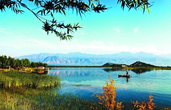 官厅湖渔业生产发达,物阜民丰,被誉为“塞外明珠”。湖岸山清水秀,果园成林。向南望,山势险峻,万里长城横卧山巅;往北眺,水天一色,碧波荡漾,山岳潜形。一幅浮光耀金、静影沉壁、烟波浩渺的天然画卷浑然天成,游目聘怀。