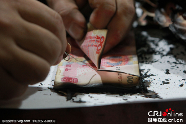 这次小孙家过火的现金,要比上次的量大得多。中国工商银行长春人民广场支行负责人李猛一面安慰小孙和他的家人,一边解释,“我们银行只有刘老师可以做这个工作,别人上去根本帮不上忙。这又是一个细致的工作,需要大量的时间来做清理,才能尽可能少地减少你们的损失。”