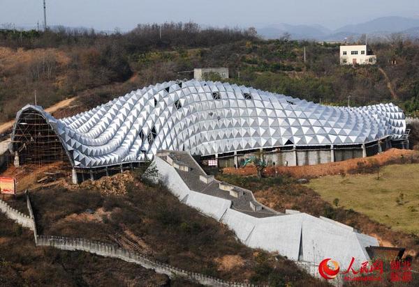 湖北十堰:恐龙蛋遗址博物馆完成屋顶装饰