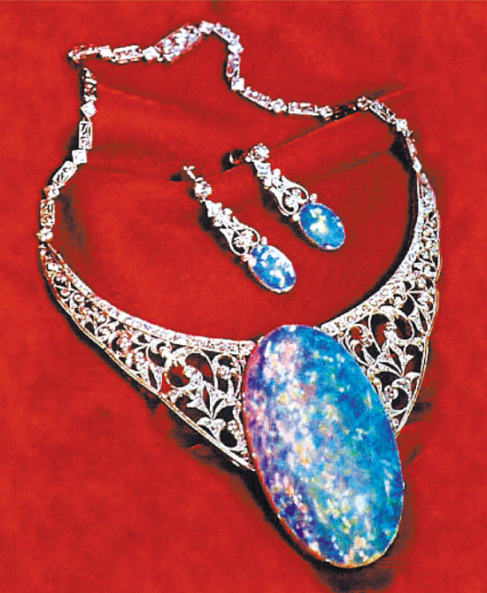 伊丽莎白女王的欧泊项链由重达205克拉的来自于澳洲的水晶欧泊制成