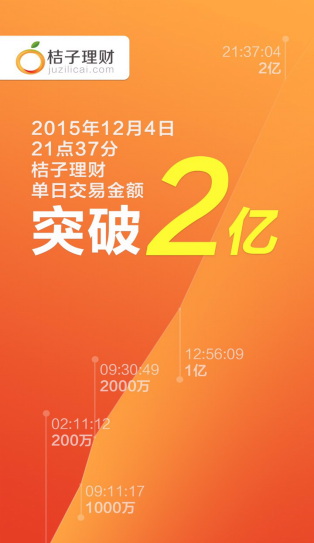 12月4日21:37分,桔子理财单日交易额突破两亿。资产端主攻年轻人消费市场的互联网理财平台桔子理财,成立短短一年,即完成了注册用户数破百万,累计交易额突破100亿的双百突破。