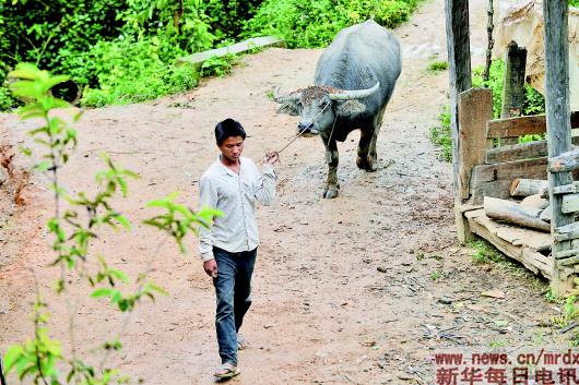 ▲9月19日,云南省西双版纳勐海县布朗山乡曼囡村曼班三队的一位拉祜族小伙放完牛回到寨子。寨子里的牛全部归集体所有,一共有20多头,是前几年政府为了方便村民干农活,送给曼班三队的。曼班三队共有17户63名拉祜族人,至今仍没人小学毕业。 新华社记者王全超摄