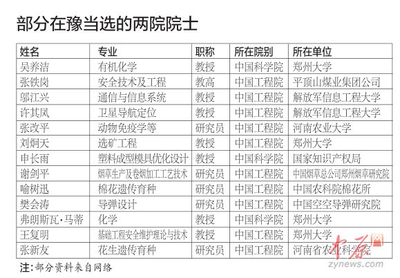 部分在豫当选的两院院士