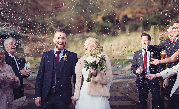 国际在线专稿:据英国《每日邮报》12月8日报道,英国多地近日遭到“戴斯蒙德”风暴(Storm Desmond)的侵袭,大雨倾盆,但这并没有打消英国西北部坎布里亚郡(Cumbria)一对新人在上个周末结婚的决心。而让人感动的是,许多宾客和工作人员都很支持他们的决定,许多人冒着倾盆大雨赶来,摄影师为了赶到现场,甚至抛弃了因交通管制而无法前行的汽车,一度只身穿过齐腰深的积水,将摄影器材装进塑料垃圾袋中高举过胸前进,最终搭了一辆拖拉机的便车才成功到达现场。