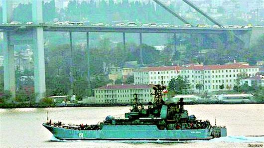 楚天都市报讯 图为:通过博斯普鲁斯海峡的俄军舰