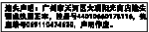 本人所有的位于本市广州市东山区东华东路525-543号(单号)543之1号房屋(属测量2301图14幅212地号)的房地产权权属证明书(证字第534号)已遗失。对此声明有异议者,请在30天内书面向广州市房地产交易登记中心(地址:珠江新城华就路31号)提出,并提供相关证明材料,特此声明。声明人:广州市民强房地产开发有限公司代理人:唐穗仪2015年12月2日