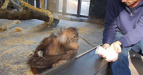 国际在线专稿:据英国《每日邮报》12月9日报道,西班牙巴塞罗那一处动物园里的大猩猩在看完简单的魔术表演后,笑得前仰后合。