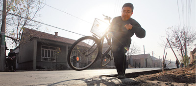 山东省直机关工委选派的第一书记孙军,常骑着自行车在无棣县水湾镇水湾村忙碌。