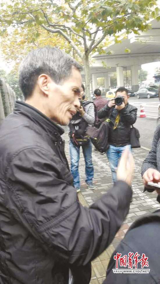 12月11日,与儿子林森浩见了最后一面的林尊耀从上海二中院出来。本报记者 王烨捷/摄
