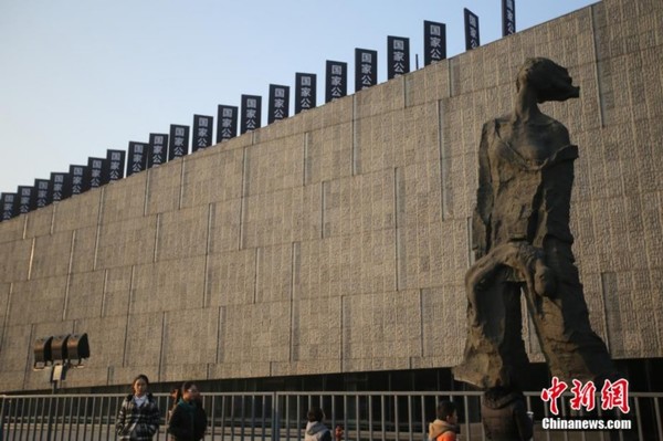 12月12日,民众在侵华日军南京大屠杀遇难同胞纪念馆外参观。12月13日上午,南京大屠杀死难者国家公祭日仪式将在侵华日军南京大屠杀遇难同胞纪念馆内举行。届时各界将举行各种形式的悼念、和平法会、烛光祭等活动祭奠30万遇难同胞。78年前的12月13日,侵华日军攻占中国南京,在此后的一个多月时间里,血腥屠杀30多万中国人,制造了震惊中外的南京大屠杀事件。中新社记者 泱波 摄