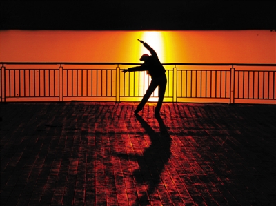 场景:一位市民在夕阳下锻炼。拍者 北国红豆