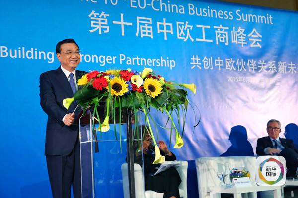 图为6月29日国务院总理李克强在中欧工商峰会发表主旨演讲。(新华社记者姚大伟摄)