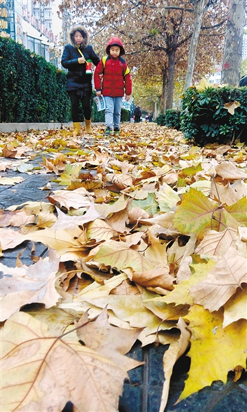 一场雨雪过后,博文路上落叶金黄。记者 张宇明 摄