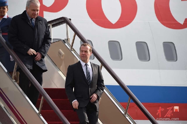 俄罗斯总理梅德韦杰夫抵达郑州