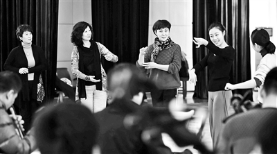 昨日北青报记者在现场看到,陈霖苍对张建峰和群众演员的配合要求极为严格,他不停地对演员们的表演和念白,以及乐队与演员的配合进行调整,要求每个演员对自己的角色进行细致地演绎,每一个走位、每一句唱腔和每一个表情都要求准确到位,可谓精雕细琢。陈霖苍说:“正考父是春秋时宋国的上卿,孔子七世祖,曾辅佐戴、武、宣三公,居功至伟,但他官位越高,人越谦恭,修身愈严、律己愈苛,铸下31字铭文称为廉政为官的名言。怎样将这样一个人物用京剧艺术的手段展现在舞台上?我想第一是表现他如何为官、如何做官,他说:官高不可忘根本。因此,正考父发展脉络离不开百姓,这出戏最直接让观众感受到,百姓需要这样的名臣,需要这样的为官。我们用了很多京剧的艺术手段来打造这部作品,同时吸收了其他一些门类好的艺术元素。喜欢听唱的观众看这部戏会十分过瘾,全剧老生唱段就有前后分别扮演正考父的奚派老生张建峰的唱腔和老生名家杜镇杰的唱腔,还有扮演后半场丑牛的杨少鹏的唱腔。这个戏有这么多的名家参与,可看性和可听性都非常强,又有很好的现实意义。”![]()