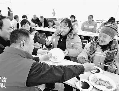 吉林电力公司组织180支党员志愿服务队,为空巢老人解难、做孤儿的“电爸爸”、帮助企业解决用电难题……图为党员志愿者近日走进社区,为环卫工人包饺子,送去“热乎乎”的志愿服务。