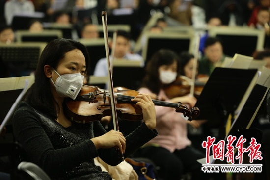 “这个曲子很震撼,其音效让没有经历过战争的年轻人,内心受到强烈的冲击。”参加演出的小提琴手张瀚文说,他对《招魂》这一乐章印象最为深刻,“把抽象的灵魂乐曲化,让活着的人深刻感受到死者的痛苦,是一种悲惨的重现。”25岁的张瀚文刚刚毕业于天津音乐学院。他说,作为学音乐的年轻人,他对抗战历史的了解,主要来自歌曲和影视作品,以前当学生的时候也演奏过《抗日军政大学校歌》《太行山上》等曲目。