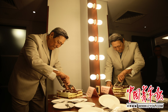 12月13日,国家大剧院后台,王西麟正在切生日蛋糕,当日是他79岁的生日。