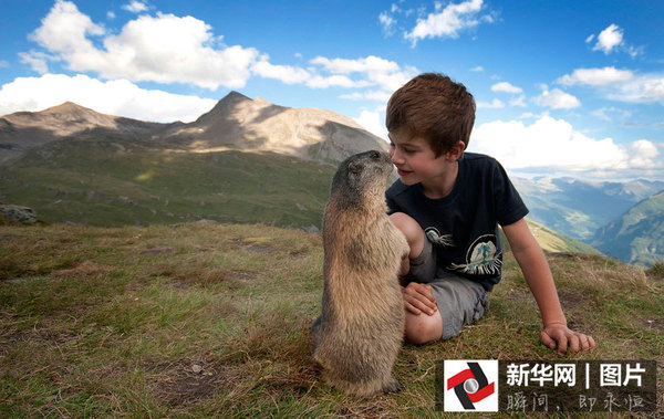 奥地利大格罗克纳山,Matteo Walch在四岁的时候便与这群土拨鼠成为了异常亲密的朋友。