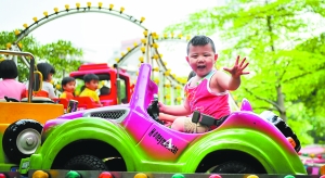 广州儿童公园,儿童在父母的陪伴下玩耍。