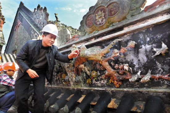 陈氏书院屋脊上的灰塑经历了上百年的历史,风吹雨打、日晒雨淋,不少灰塑受到了不同程度的褪色风化、缺失剥落等损坏,广东民间工艺博物馆每隔几年就要进行一次加固、修补、上彩色等保养。本次进行的连廊灰塑保养工程从今年11月启动,一直持续到明年上半年。