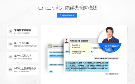 王路介绍说:“在世界工厂网V3版本上线前,我们发掘并签约了数百位在工业品领域极富经验的专家师傅。他们能够从根源上剖析企业在生产、配套等各个环节中的问题,从而为采购提出合适的解决方案。”