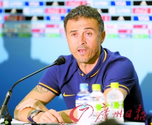 面对恒大,巴萨主帅恩里克提醒自己的球员不能大意。 特派记者 廖艺 摄