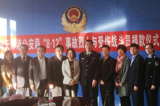 2015年12月11日,向天津港公安局“8·12”事故烈士与受伤战斗员捐款仪式在天津港公安局举行。共青团天津市委副书记王凤、天津市青少年发展基金会秘书长孙伟、天津港公安局政委金树成、东江分局局长宋江欣等领导及包括联动优势在内的7家爱心企业代表共同出席了本次捐赠仪式。