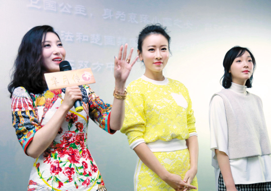 《羋月传》中,羋月屡遭暗算,但每到关键时刻都有贵人相助,让她躲过一劫。广州点映会当天,羋月的两个“贵人”——饰演秦国大公主孟嬴的毛俊杰以及饰演楚怀王宠妃魏美人的何杜娟也来到现场。