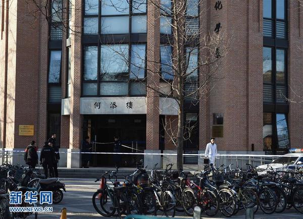 这是发生起火的清华大学何添楼门口(12月18日摄)。 12月18日,清华大学一实验楼起火。据了解,起火位置位于清华大学何添楼二层,系化学系实验室。经全力扑救,大火已被扑灭,现场一名实验人员死亡。目前,事故原因正在调查中。新华社记者 陈晔华 摄